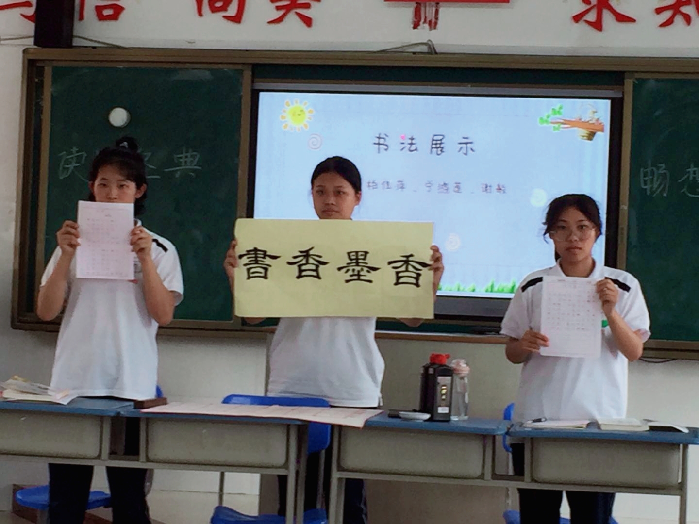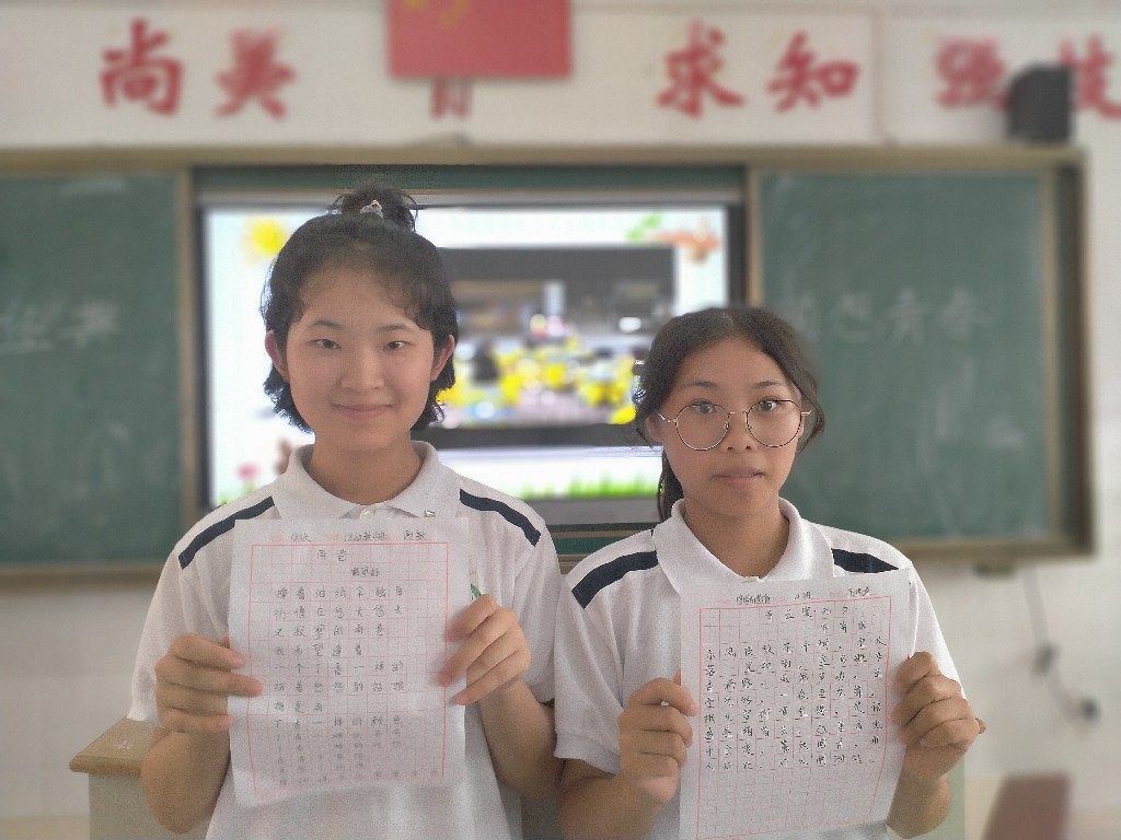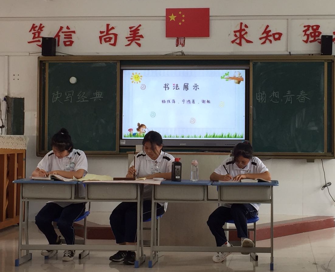 书法的演变时刻散发着古老艺术的魅力,深受一代又一代人的喜爱。“练字即练志”“学书即为人”。柏佳萍、宁鸿莲、谢敏同学在同学们安静、认真的氛围中进行现场书写,她们的作品获得了老师及同学们热烈的掌声!
