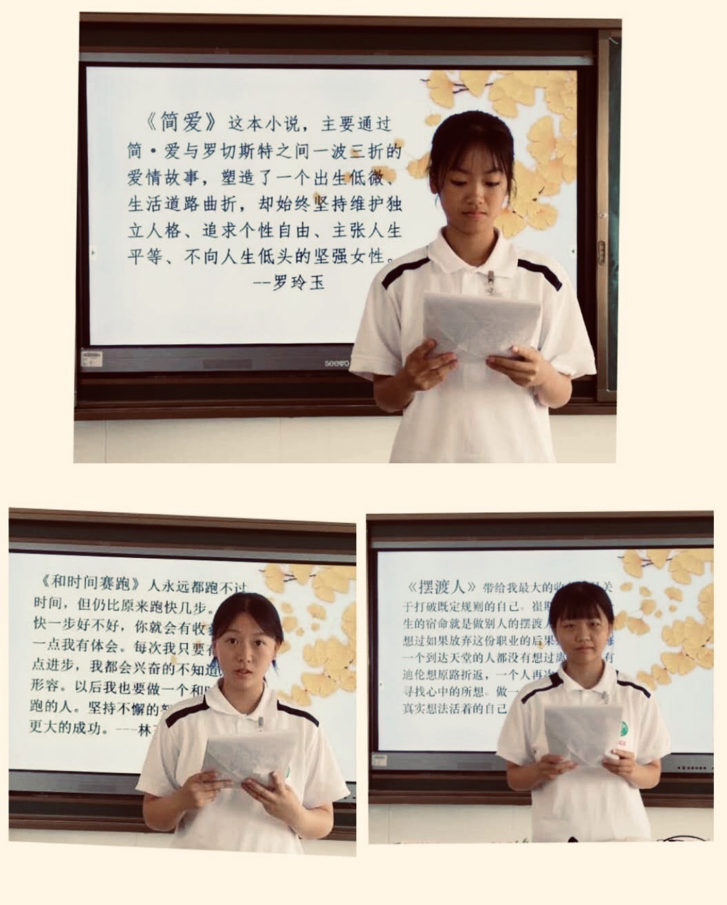 书籍是人类智慧的结晶,书籍是人类进步的阶梯。读书就是一次与大师的对话,与智者的交流,让人受益终身。郭文轩、柏佳萍、叶文妤、罗铃玉、林玉珍同学为大家介绍了寒假阅读过的好书《钢铁是怎样炼成的》《鲁滨孙漂流记》《摆渡人》《简爱》等。生动的分享让大家都感受到阅读的快乐与收获。