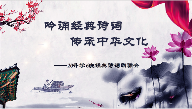 在语文“古代诗词欣赏”单元教学结束后,我们深深地感受到祖国诗歌文化的博大精深。在老师的倡议下,20升学6班于12月24日在教室开展了以“吟诵经典诗词 传承中华文化”为主题的经典诗词朗诵会。