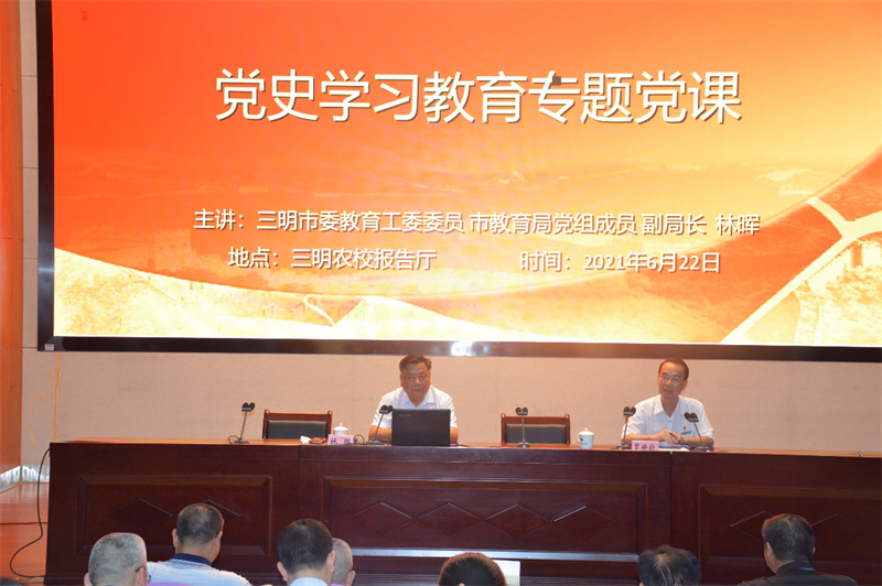 6月22日下午,中共三明市委教育工委委员、三明市教育局党组成员、副局长林晖来星空体育(中国)上党课。星空体育(中国)全体党员领导干部和部分教职员工到场聆听,党课由星空体育(中国)党委书记、校长罗世钦主持。