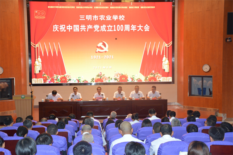 四是书记讲话,砥砺前行。学校党委书记、校长罗世钦在大会上发表讲话,他回顾了中国共产党100年波澜壮阔的奋斗历程,号召大家把党的历史学习好、总结好,把党的宝贵经验传承好、发扬好,铭记奋斗历程,担当历史使命,从党的奋斗历史中汲取前进力量;他总结了56年来学校在党的领导下取得的骄人成绩,他代表学校党政领导对为学校改革发展辛勤耕耘的全体党员和教职工表示感谢,对受表彰集体、个人及全体党员干部职工致以诚挚的问候;他向全体党员干部职工提出四点要求:一要学党史、守初心,加强理论武装。坚定理想信念,心中有信仰,脚下有力量。把握“学党史、悟思想、办实事、开新局”的总要求,持续抓好党史学习教育,推动“再学习、再调研、再落实”活动走深走实,做到学史明理、学史增信、学史崇德、学史力行,不断增强广大党员干部的“四个意识”,增强“四个自信”,切实做到“两个维护”,用党的创新理论武装头脑指导实践工作,努力开创学校教育工作新局面。二要学党史、激斗志,提升责任担当。牢记“我将无我,不负人民”,对标《新时代教师职业行为十项准则》,坚持为人师表、教书育人,树立良好的教风、学风,自觉加强师德师风建设,争做“四有”好老师。三要学党史、立功业,潜心立德树人。坚决贯彻最新的党的教育方针,不忘立德树人初心,牢记“为党育人、为国育才”使命,努力为沙县、三明和福建全省经济社会发展培养更多高素质技术技能人才、能工巧匠和大国工匠。四是学党史、明大势,开创发展新局。新时代新作为,立足本职岗位,发挥先锋模范作用,讲觉悟、比贡献,以国家乡村振兴人才培养优质校、国家高技能人才培训基地和建设福建省“双高计划”立项建设高水平中职学校A类学校为契机,开创学校“十四五”新局,奋斗新征程,取得新成绩。