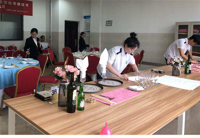 为深入贯彻《国家职业教育改革实施方案》精神,提升职业教育质量和学生专业技能,扎实推进“1+X”职业技能等级证书制度试点工作,5月21日至22日,我校在计算机机房及餐饮服务实训室举行了2022年“1+X”餐饮服务管理(初级)职业技能等级证书考试。考试合格的学生将获得由北京首都旅游集团有限责任公司颁发的餐饮服务管理(初级)职业技能等级证书。我校19级酒店管理五年专共35名学生参加了考试。