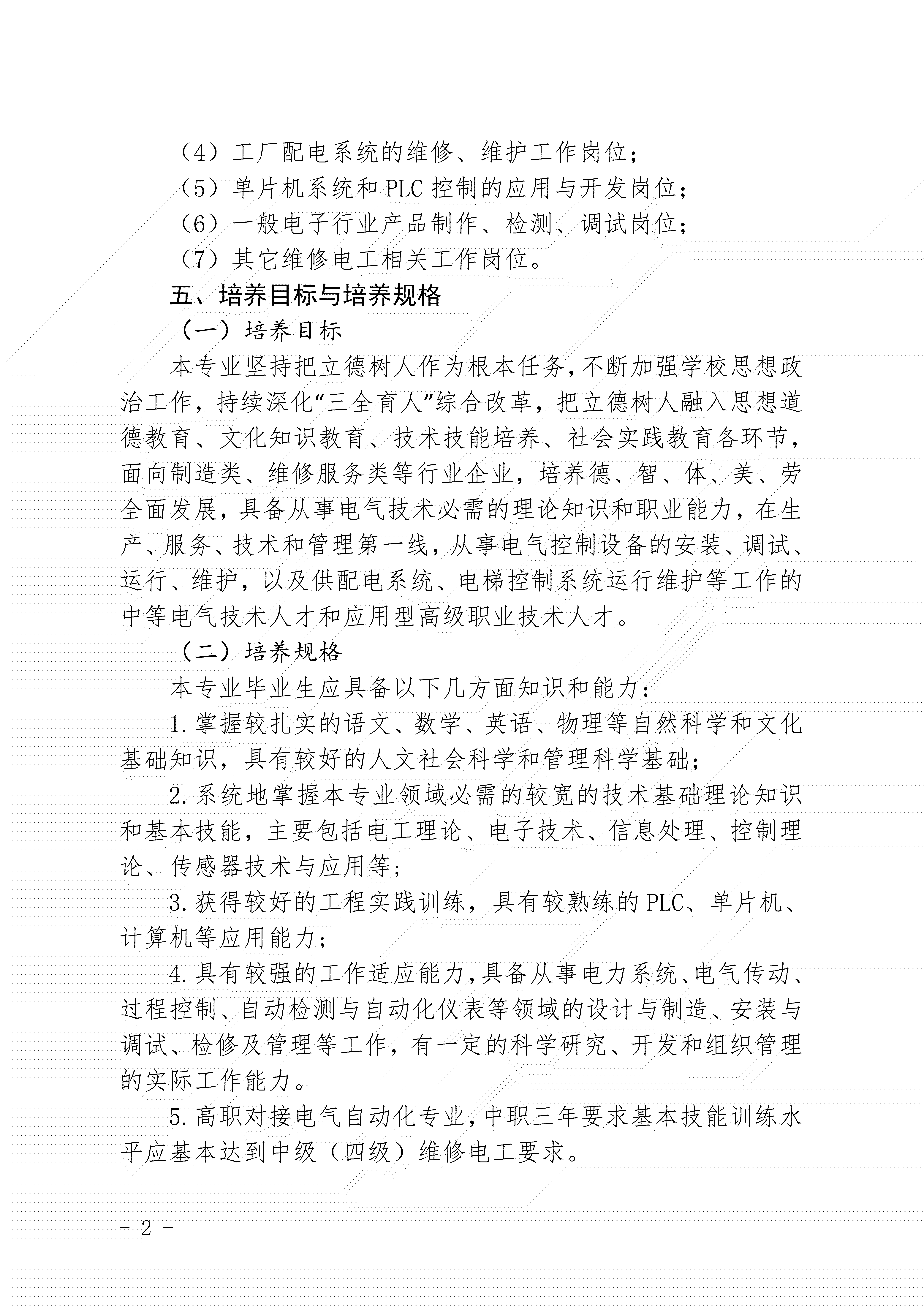 三明市农业学校电气专业人才培养方案(2024)