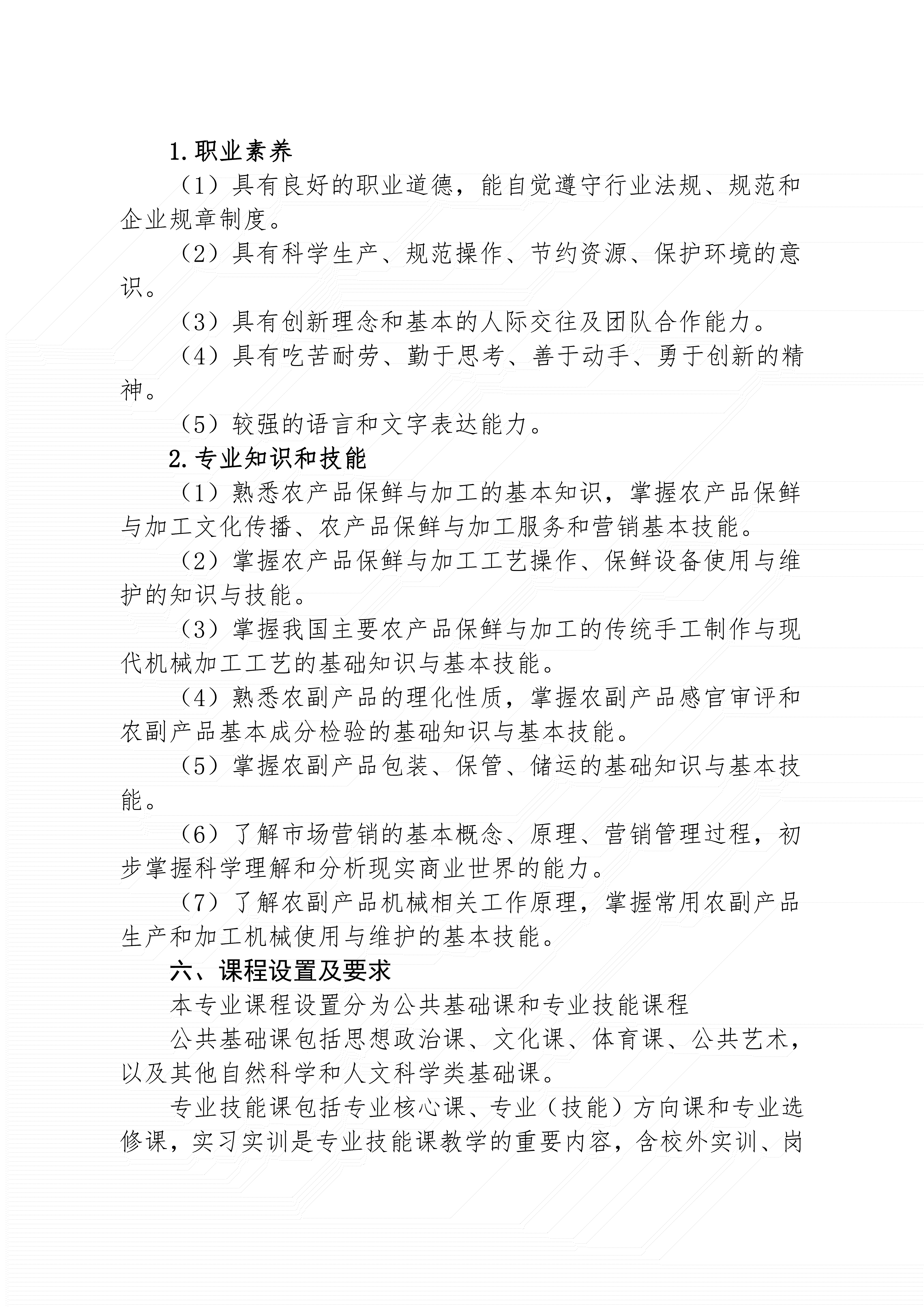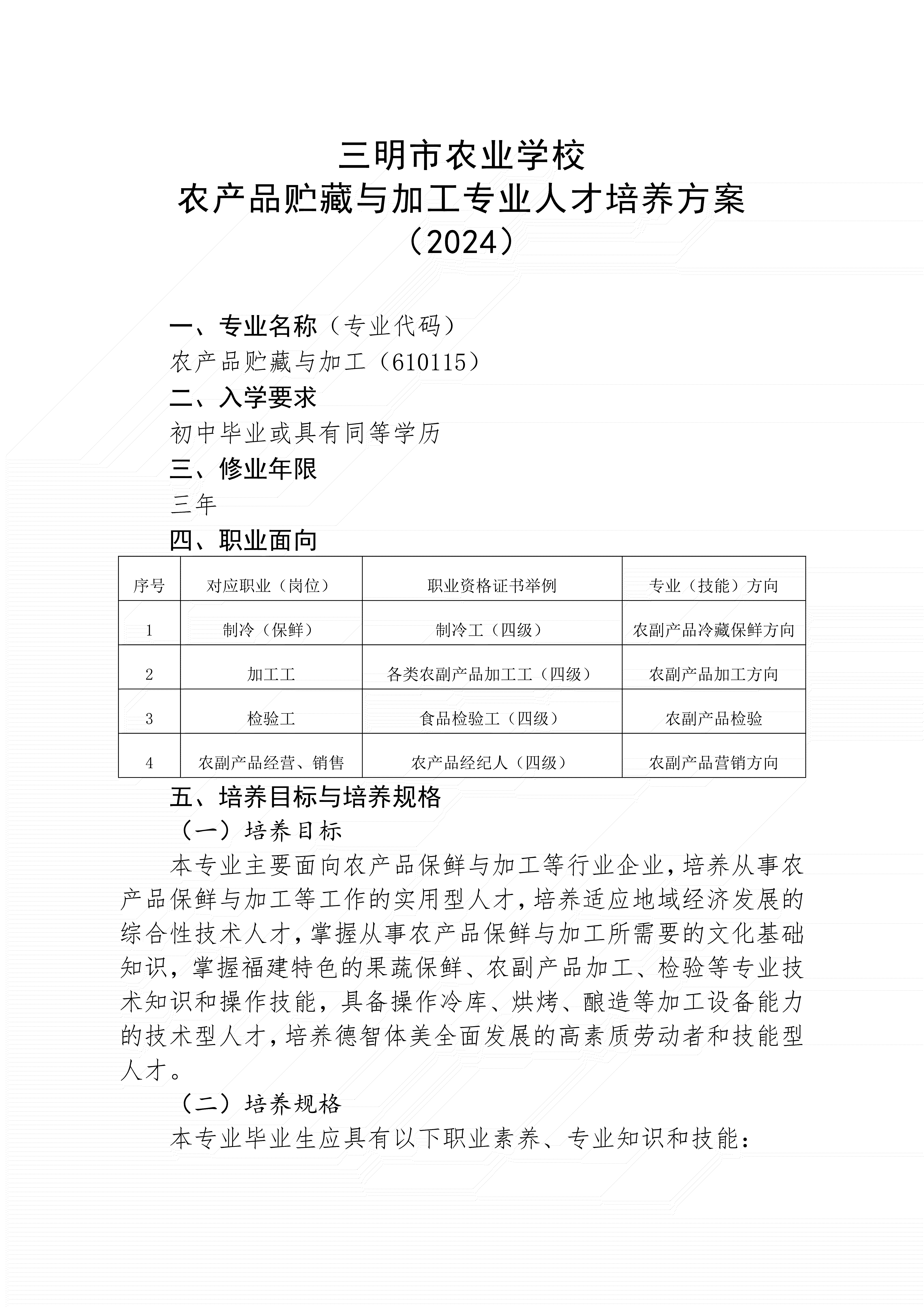 三明市农业学校农产品贮藏与加工专业人才培养方案(2024)