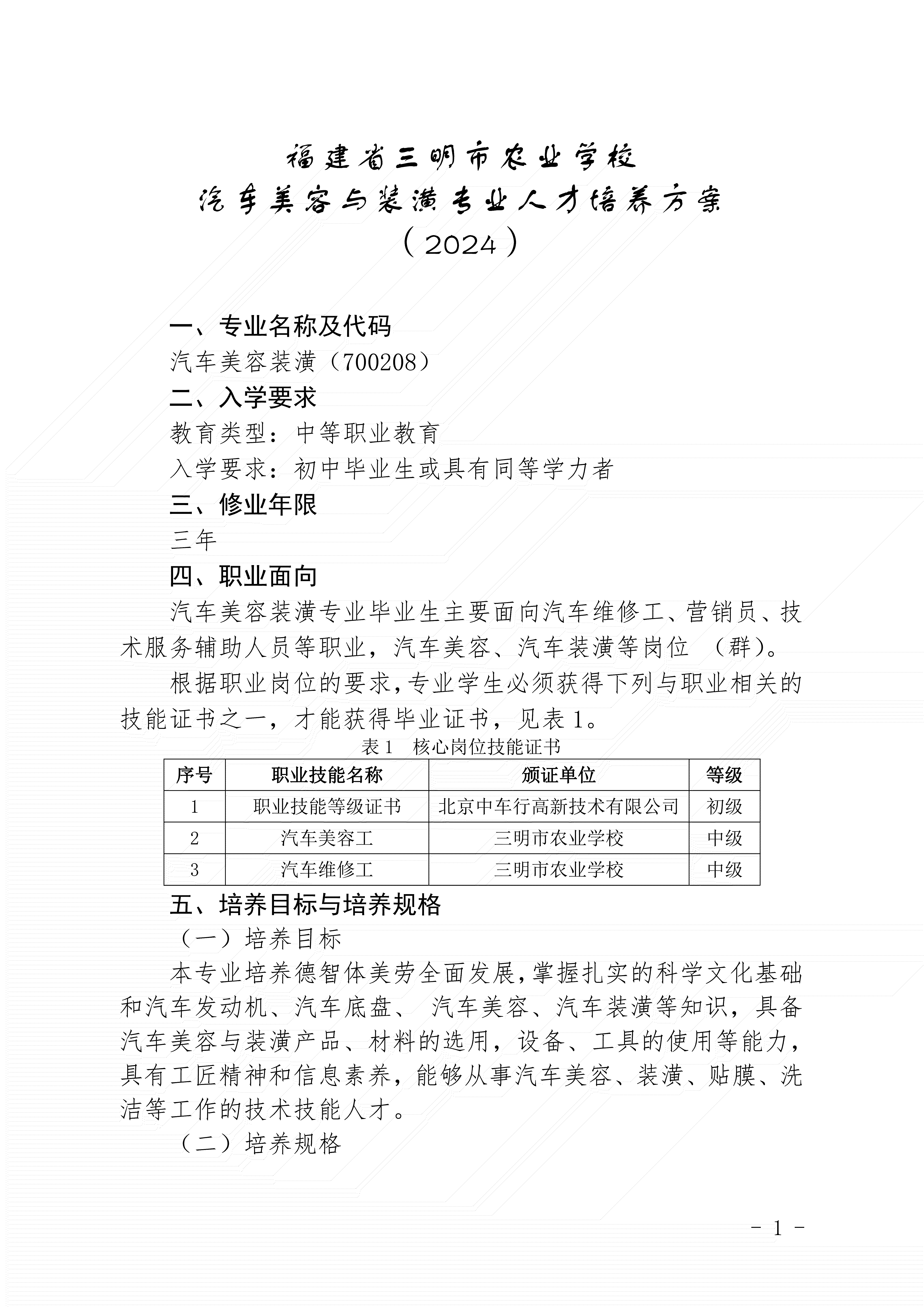 三明市农业学校汽车美容与装潢专业人才培养方案(2024)