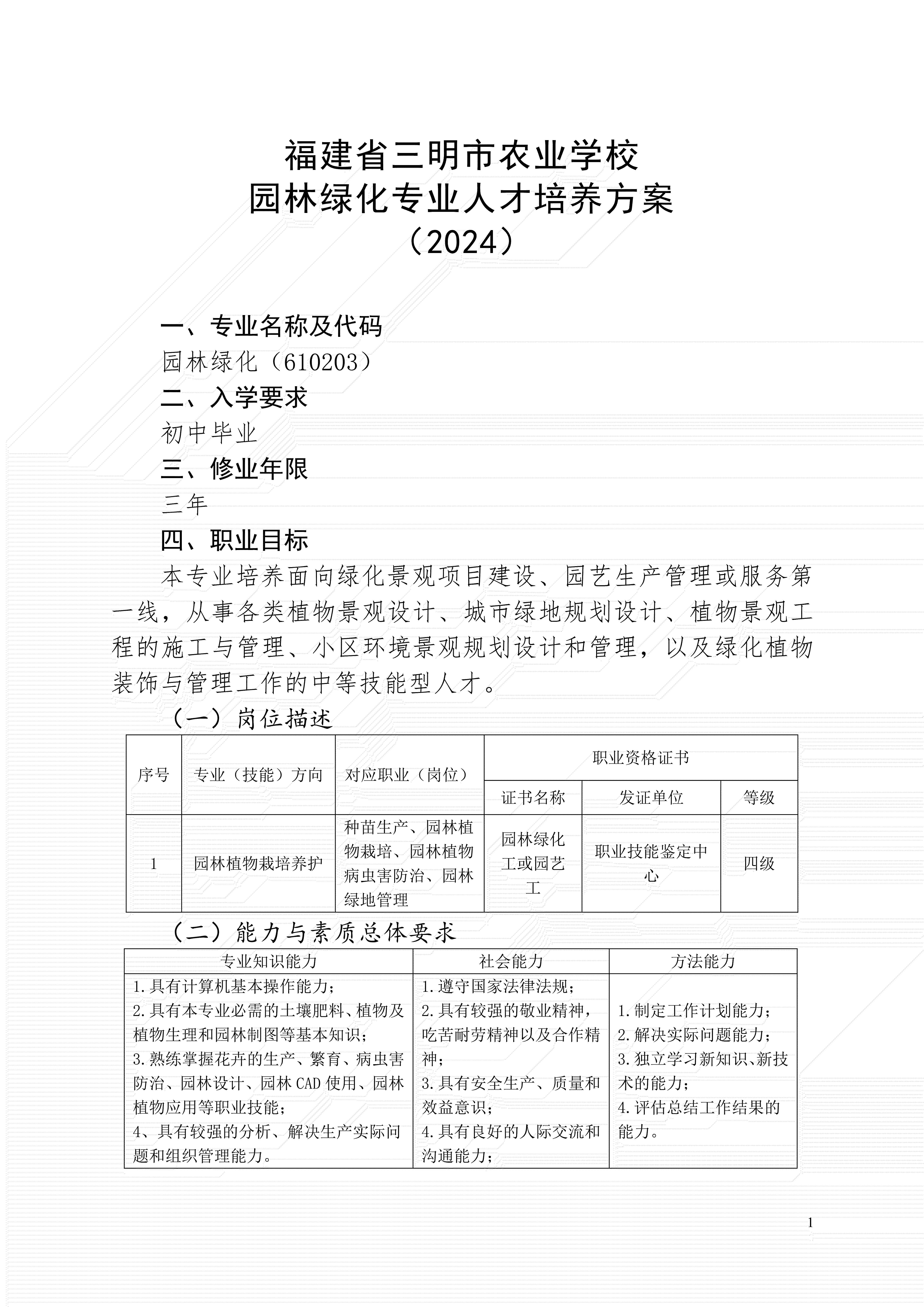 三明市农业学校园林绿化专业人才培养方案(2024)