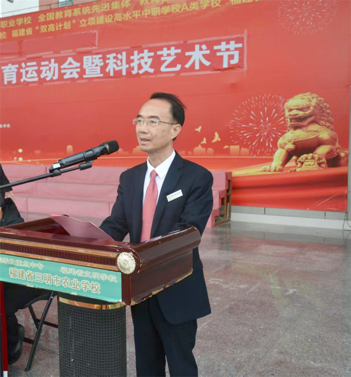 2025年11月5日上午,三明市农业学校第三十八届体育运动会暨科技艺术节在学校运动场隆重开幕。开幕式由组委会副主任、总裁判长、学校党委委员、副校长胡安生主持。